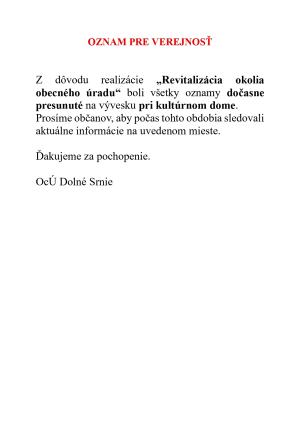 Oznamy sú dočasne presunuté na vývesku pri kultúrnom dome