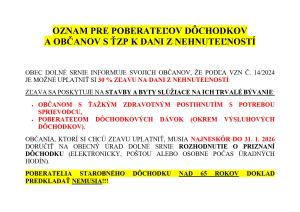 Oznam pre poberateľov dôchodkov a občanov s ŤZP k dani z nehnuteľností