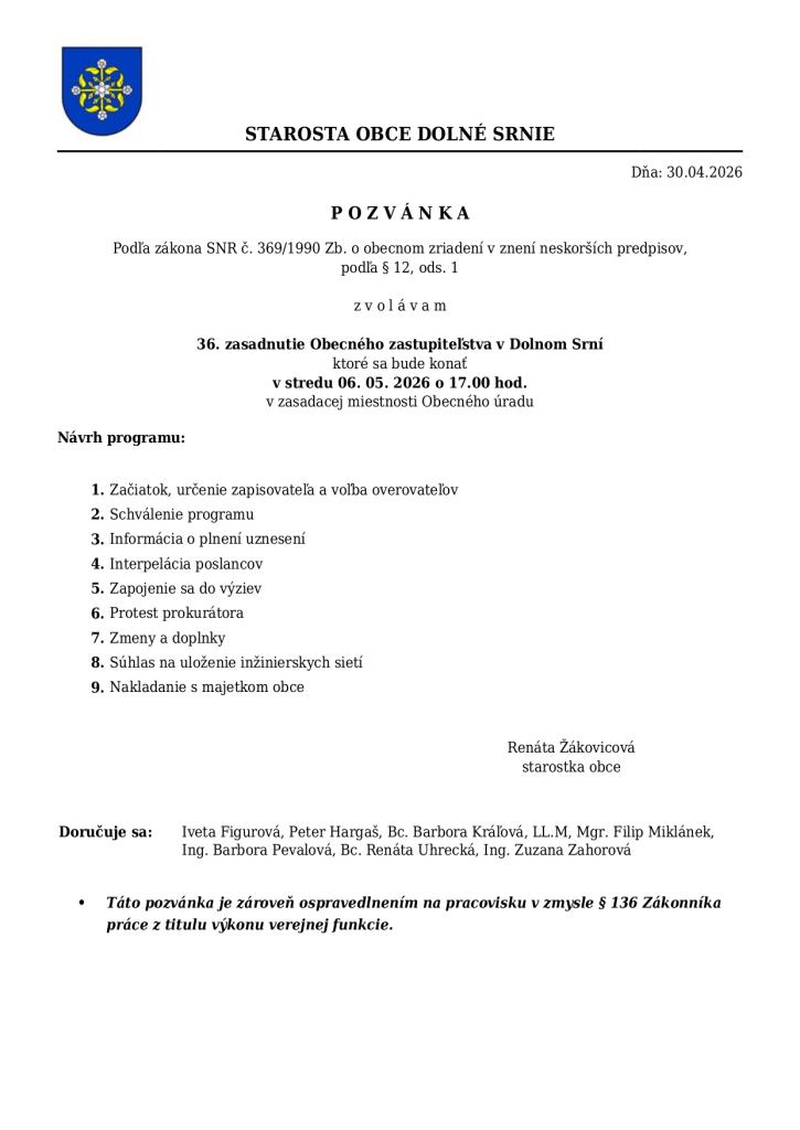 Pozvánka na 36. zasadnutie OZ